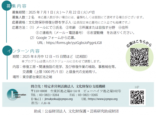 「文化財保存修復を目指す人のための実践コース」、令和7年度の募集を開始いたします。
